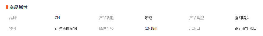 全銅搖臂噴頭 園林草坪灑水噴頭雙出水口 6分外螺紋噴頭 10個(gè)