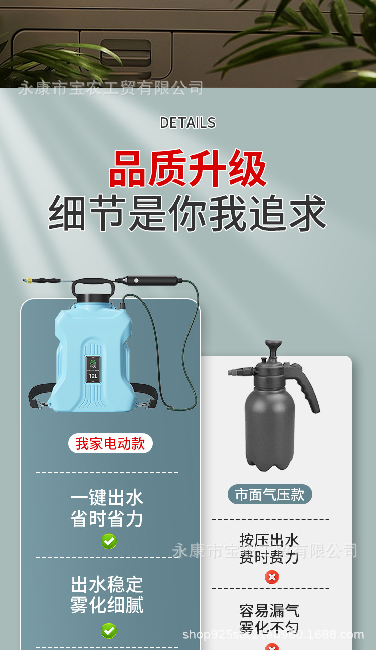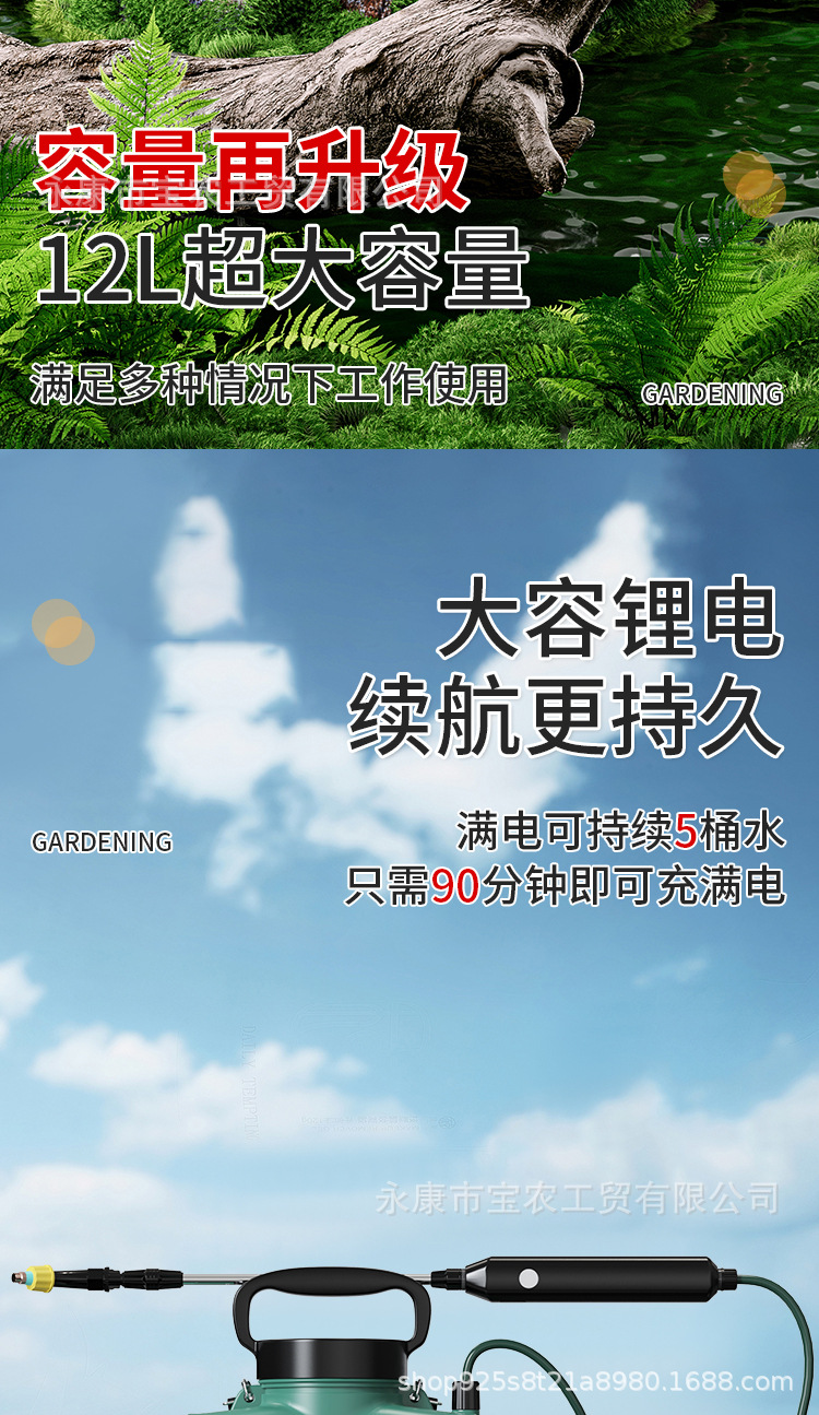 電動(dòng)噴霧器園藝家庭鋰電池增壓花卉手持噴水槍多功能家用小型噴壺