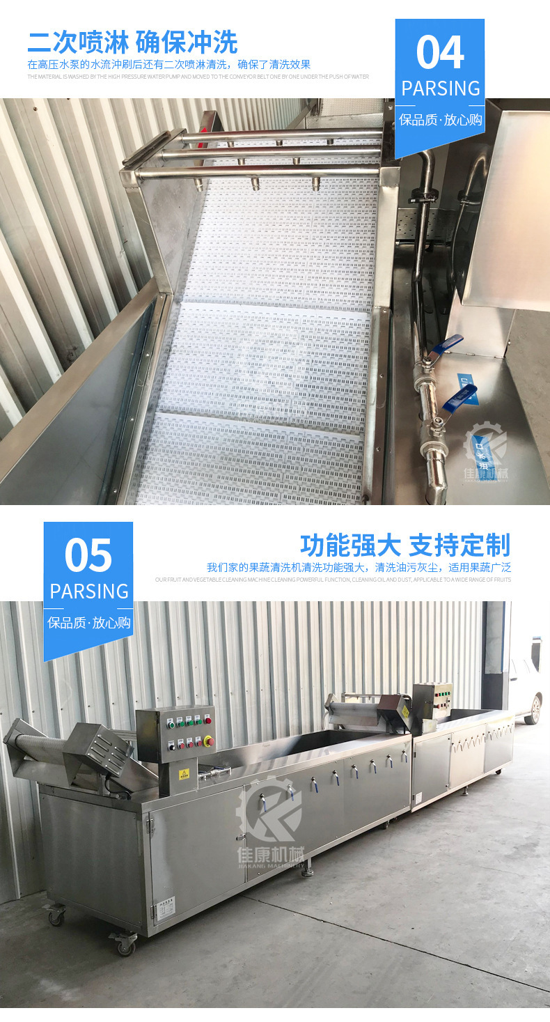 詳細(xì)信息 訂貨號(hào)JKQ-320 加工定制是 貨號(hào)JKQ-320 種類果蔬清洗機(jī) 品牌佳康 型號(hào)JKQ-320 功率2.6(kw) 電壓380(V) 外形尺寸3200*900*1300(mm) 產(chǎn)品用途果蔬清洗機(jī) 凈重240(kg) 包裝纏繞膜 適用范圍冷凍食品廠設(shè)備,休閑食品廠設(shè)備,果蔬加工廠設(shè)備,其他 營銷新品 規(guī)格JKQ-320,JKQ-220