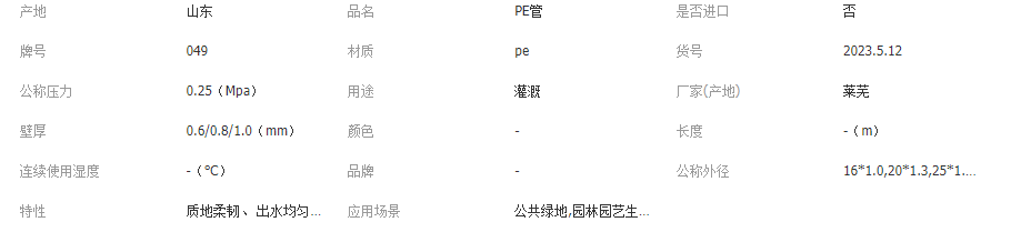 主營產(chǎn)品或服務(wù): 滴灌帶; 滴灌管; PE管; PVC管材; PE管件; 過濾器; 施肥器; 噴頭;...