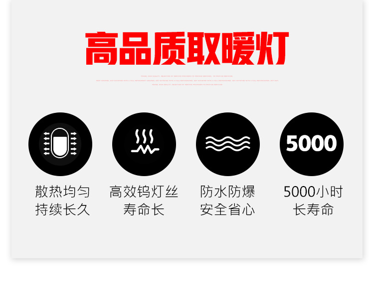 詳細信息 01 加工定制否 貨號01 適用對象豬 用途保溫設(shè)備 品牌騰飛 型號100W 150W 250W 外型尺寸標準 包裝說明紙箱 控溫范圍標準 類型取暖設(shè)備 產(chǎn)品類型全新 售后服務(wù)無 產(chǎn)品規(guī)格平面100W,平面150W,平面250W,麻點100W,麻點150W,麻點250W 是否跨境出口專供貨源否