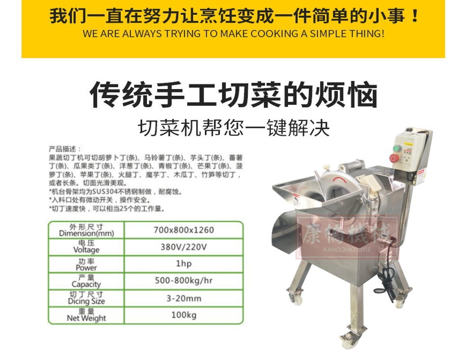 詳細(xì)信息 訂貨號000214 加工定制是 貨號214 種類切丁機(jī) 品牌康橋 型號800 電壓380(V) 功率5(Kw) 外形尺寸1300(mm) 凈重320(Kg) 包裝木架 適用范圍茶餐廳設(shè)備,西餐店設(shè)備 營銷新品 售后服務(wù)365