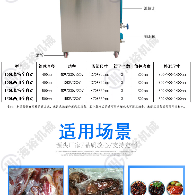 規(guī)格定金,100L蒸汽全自動(dòng),100L水浴式全自動(dòng),150L蒸汽式全自動(dòng),150L水浴式全自動(dòng)