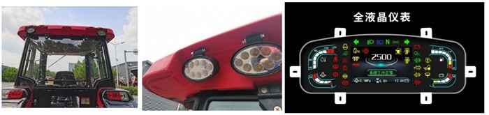 2.新一代滾塑頂駕駛室,隔熱及密封性好、駕駛室噪音低、視野開闊;裝配LED工作燈,亮度高、壽命長;采用數(shù)字虛擬全液晶儀表,內(nèi)容豐富清晰、故障可漢字實時顯示,高檔大氣、科技感強;USB充電器接口,2.1A大電流,滿足手機等移動設備的應急充電;終端滿足農(nóng)機“三合一”補貼要求,具備“OTA”自動升級功能,補貼無憂。配備點煙器接口,可用作小功率電子設備的充電口;中央控制盒,集中控制,質(zhì)量可靠,維修簡單。