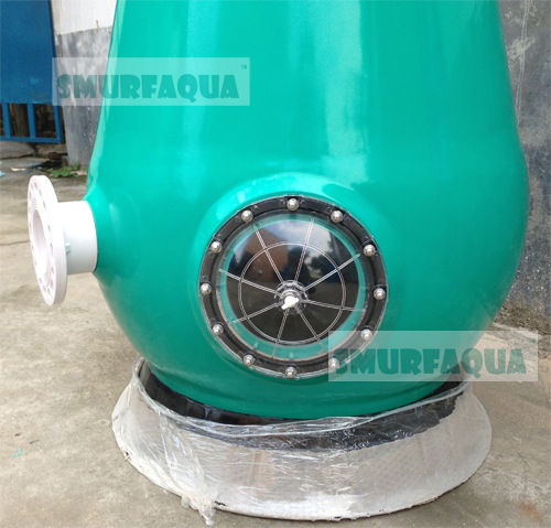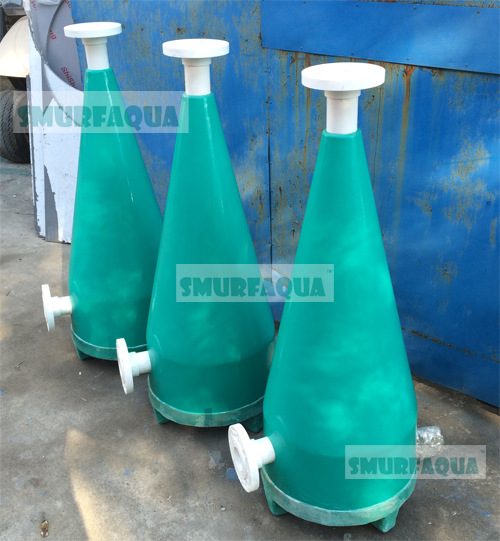 氧氣錐采用玻璃鋼(高強度玻璃纖維復(fù)合樹脂)噴熔纏繞而成。整體呈現(xiàn)上小下大的錐體結(jié)構(gòu)。進(jìn)出水采用PVC法蘭連接。底部有排污口及觀察窗。