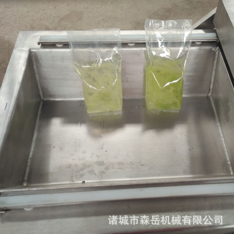 下凹式真空包裝機(jī)是針對(duì)于市場(chǎng)半液體、液體產(chǎn)品的生產(chǎn)專門設(shè)計(jì)的,使機(jī)體工作平臺(tái)形狀為凹槽式樣,物料放置處采用下凹型結(jié)構(gòu),袋口立封形式,封口高度提高,防止液體溢出,從而提高工作效率。下凹式真空包裝機(jī)是非標(biāo)設(shè)備,需要根據(jù)客戶需求加工定做,下凹的尺寸、傾斜度是根據(jù)包裝袋的尺寸、產(chǎn)品的性質(zhì)決定的,確保設(shè)備的實(shí)用性。