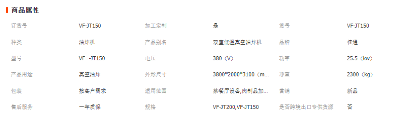 佳通機(jī)械雙室低溫真空油炸機(jī)規(guī)格: