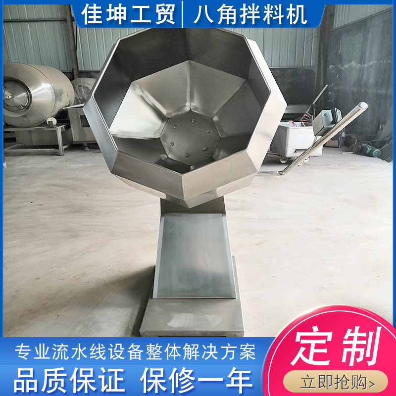 拌料機(jī)可將各種原料肉與淀粉、輔料、水等進(jìn)行攪拌和混合。八角多角拌料機(jī)自動(dòng)拌糖、拌料機(jī)拌糖、拌料均勻,食品不宜碎,出料時(shí)多余的糖、料粉與產(chǎn)品自動(dòng)分離,一個(gè)人操作,省工省時(shí),每小時(shí)可生產(chǎn)400-600kg。