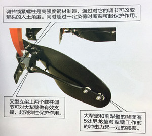 全懸掛式;安全螺栓保護系統(tǒng);高強度犁框架;犁地入土傾角可調(diào),自磨刃口式犁鏟,可拆換方便;有5檔作業(yè) 幅度可調(diào);限深輪和運輸輪合用。