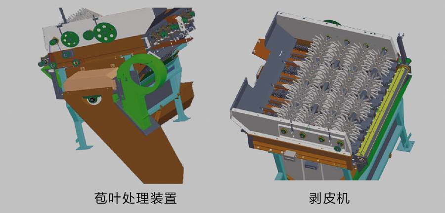 ●苞葉由順導(dǎo)裝置引導(dǎo)至還田機(jī)切碎并配備風(fēng)機(jī),苞葉處理效果好、排送更順暢;