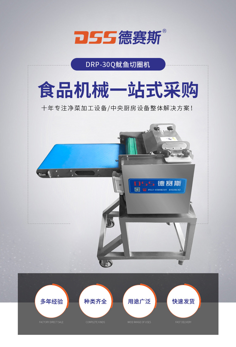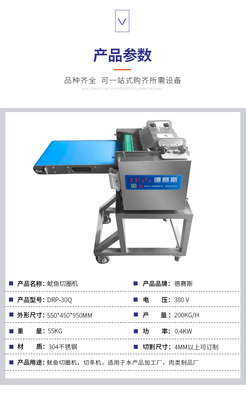 詳細(xì)信息 訂貨號DRP-30Q 加工定制否 貨號DRP-30Q 種類魷魚切圈機(jī)切條機(jī) 品牌德賽斯 型號DRP-30Q 電壓380(V) 功率0.4(kw) 凈重55(kg) 包裝木箱 外形尺寸550*450*950(mm) 產(chǎn)品用途魷魚切圈機(jī),切條機(jī),適用于水產(chǎn)品加工廠,肉類制品廠