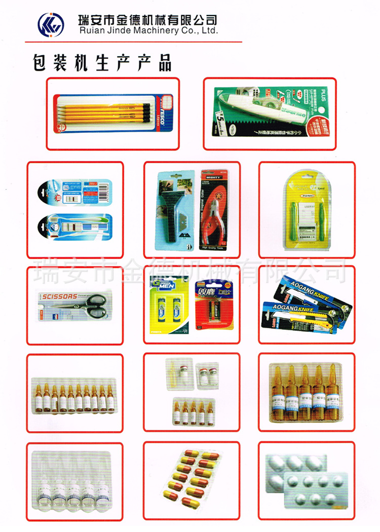 主要產(chǎn)品有:西林瓶/安瓿瓶/鋁塑泡罩包裝機、紙塑泡罩包裝機、平板式鋁塑泡罩包裝機、其廣泛應用于醫(yī)藥、食品、電子、五金等行業(yè)中的各種塊狀物和液體的鋁塑包裝。具有防潮、防塵、提高產(chǎn)品檔次和附加值之用途,本機可與枕式包裝機,裝盒機等機械聯(lián)動生產(chǎn)。