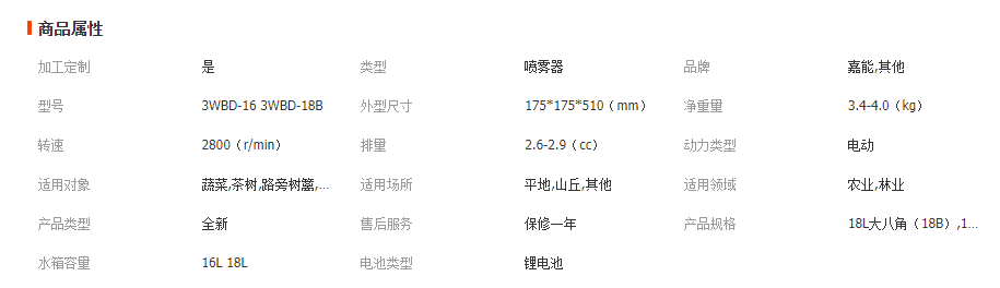 嘉能鋰電池電動(dòng)噴霧器技術(shù)參數(shù)