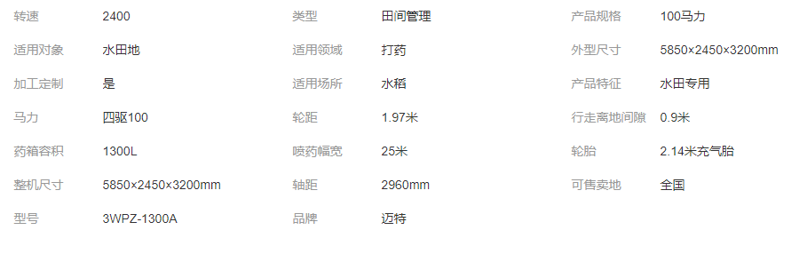 邁特植保機1300A 水田打藥機 水稻專用 2.14米大輪