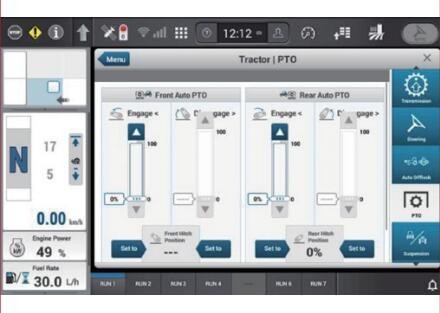 標(biāo)配自動(dòng)四驅(qū)、自動(dòng)差速鎖、車速雷達(dá)、打滑率控制系統(tǒng),五組可編程遠(yuǎn)程輸出閥,ISOBUS 和 Powerbeyond