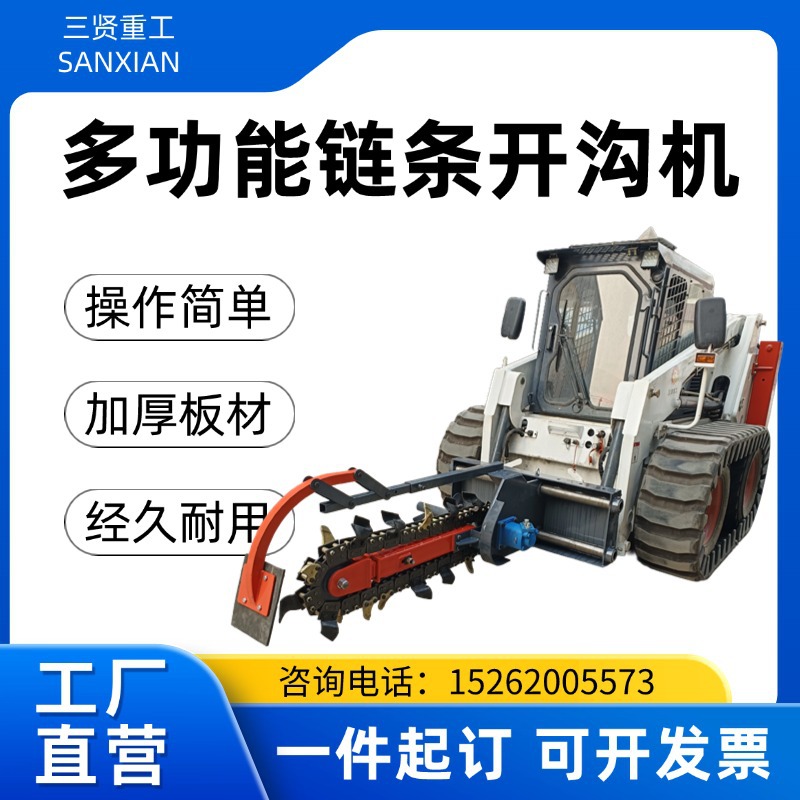 三賢廠家優惠開溝挖渠的好幫手滑移機加裝多功能挖溝機,操作簡單