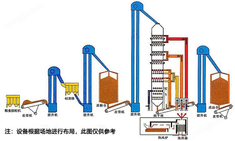 油菜籽烘干機(jī)(塔)工藝流程: