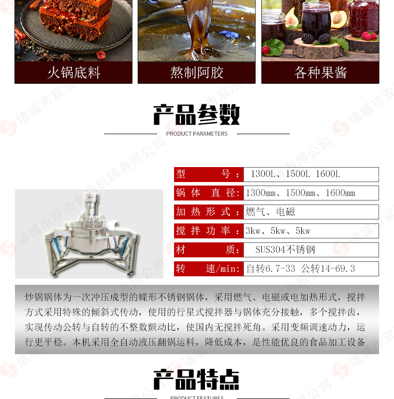 詳細(xì)信息 訂貨號SHDZ34 加工定制是 貨號SHDZ34 種類調(diào)味品加工機(jī)械 品牌雙號食品機(jī)械 型號SHDZ1500 電壓380(V) 功率4.5(kw) 產(chǎn)品用途加工火鍋底料,各種調(diào)味品 外形尺寸2400*1900*1780(mm) 凈重800(kg) 包裝纏繞膜或木架 營銷新品 售后服務(wù)整機(jī)質(zhì)保一年 規(guī)格定金