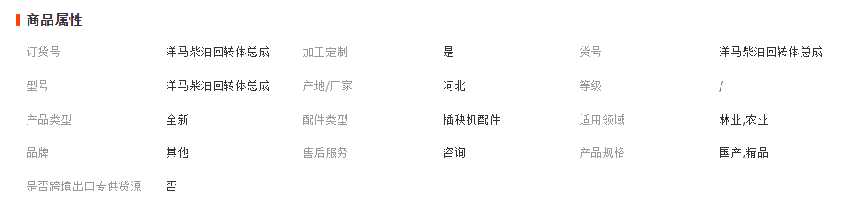 干草叉車配件; 收割機(jī)配件; 耕作機(jī)械配件; 拖拉機(jī)配件; 其他各種農(nóng)機(jī)配件