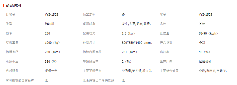 全自動液壓榨油機技術(shù)參數(shù)