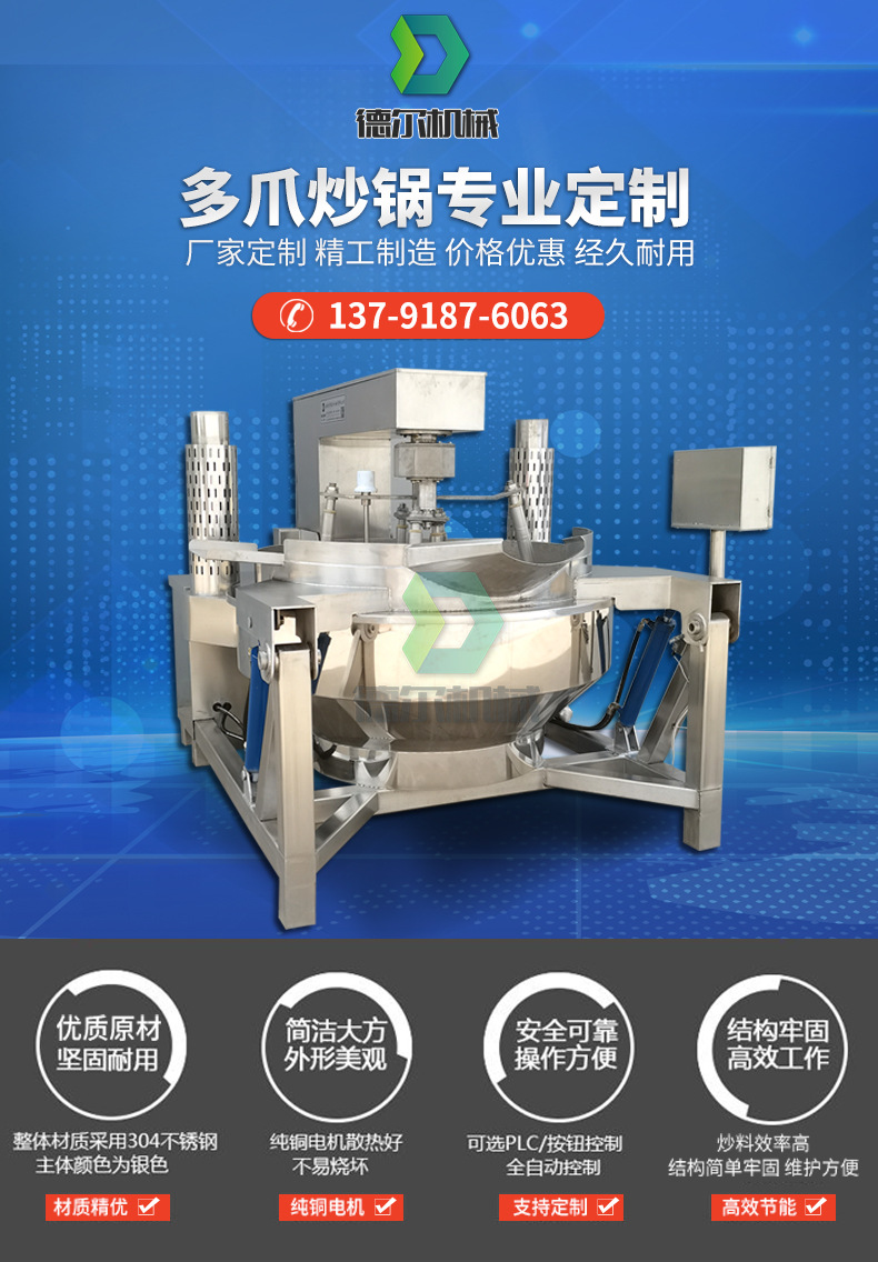 多爪行星攪拌炒鍋全自動(dòng)醬料火鍋底料炒料機(jī)大型商用燃?xì)饧訜岢村?/span>