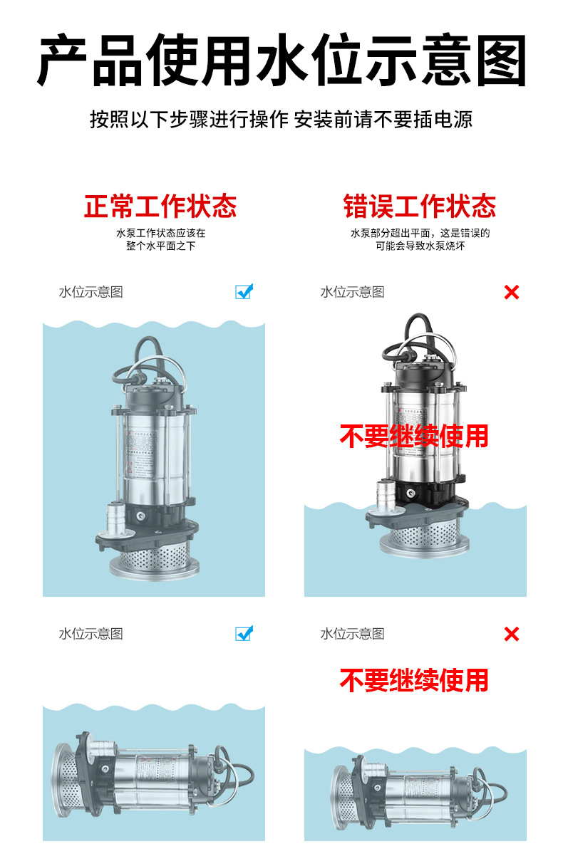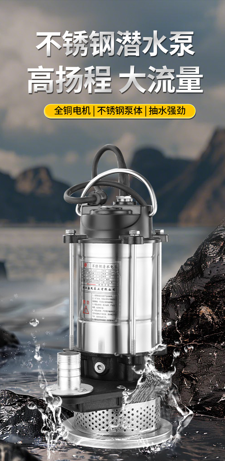 不銹鋼潛水清水泵一寸高揚(yáng)程家用抽水水泵水井灌溉單相抽水機(jī)220V