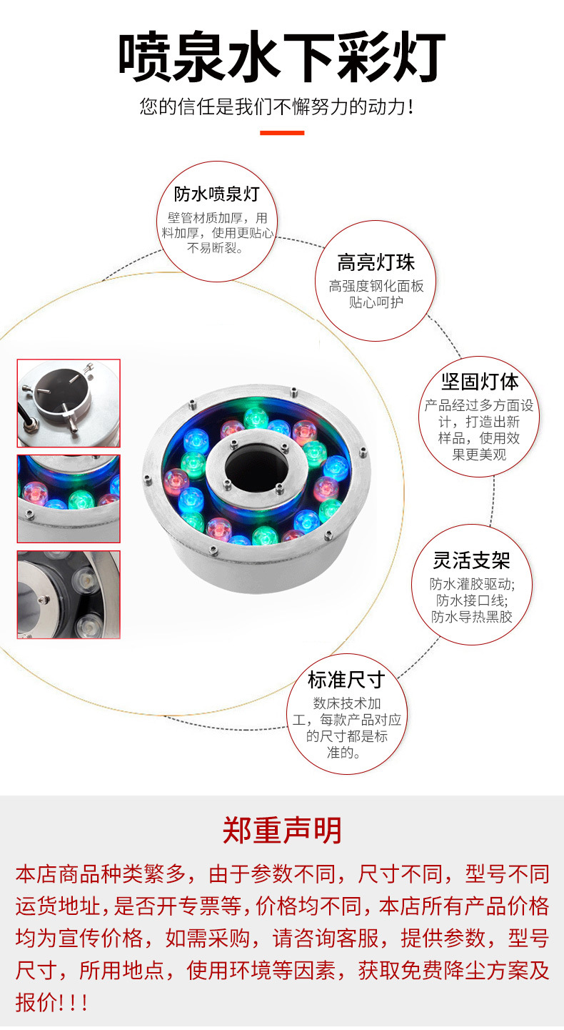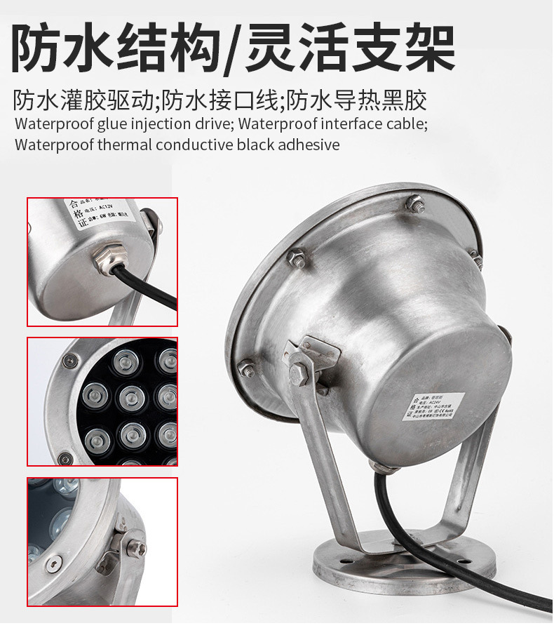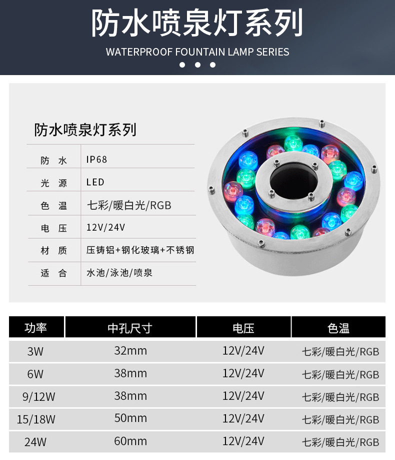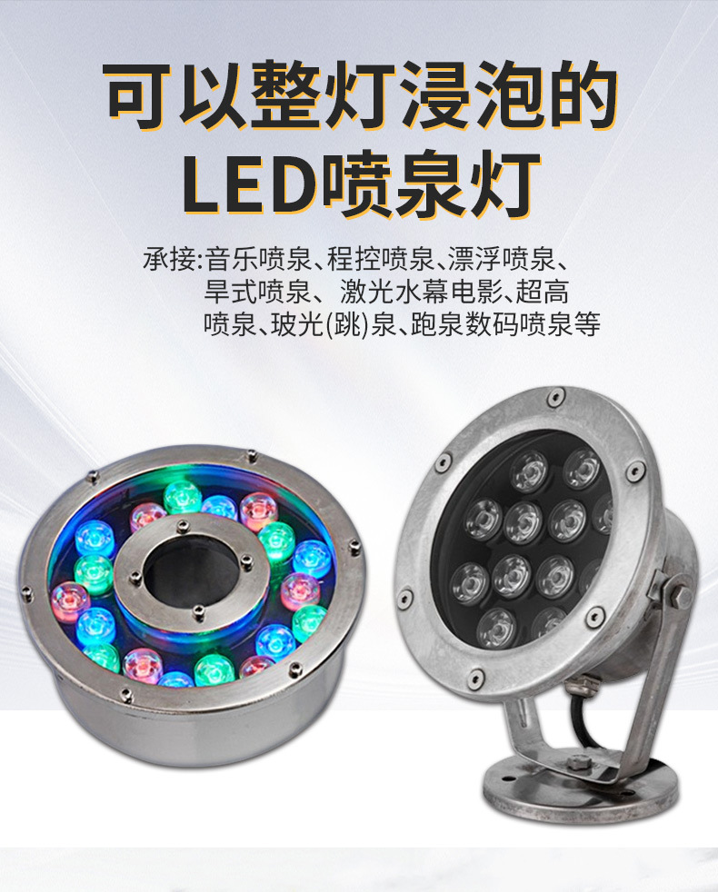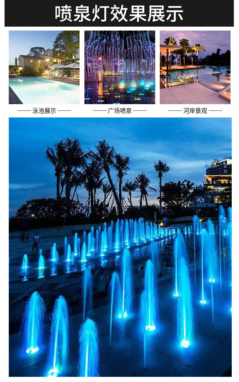 led水底燈射燈戶外防水七彩噴泉燈魚池?zé)艟坝^燈遙控低壓24v水下燈
