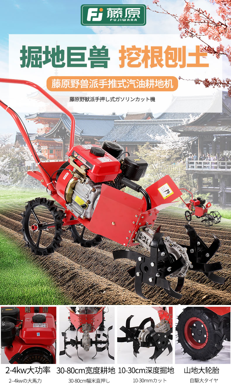 藤原耕地機(jī)四沖程汽油松土機(jī)翻地機(jī)大功率大棚鋤草機(jī)翻土機(jī)微耕機(jī)