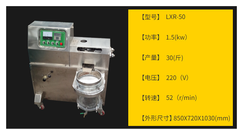 廠家直供現(xiàn)貨50型芝麻榨油機(jī) 新款不銹鋼熱榨小型螺旋芝麻榨油機(jī)