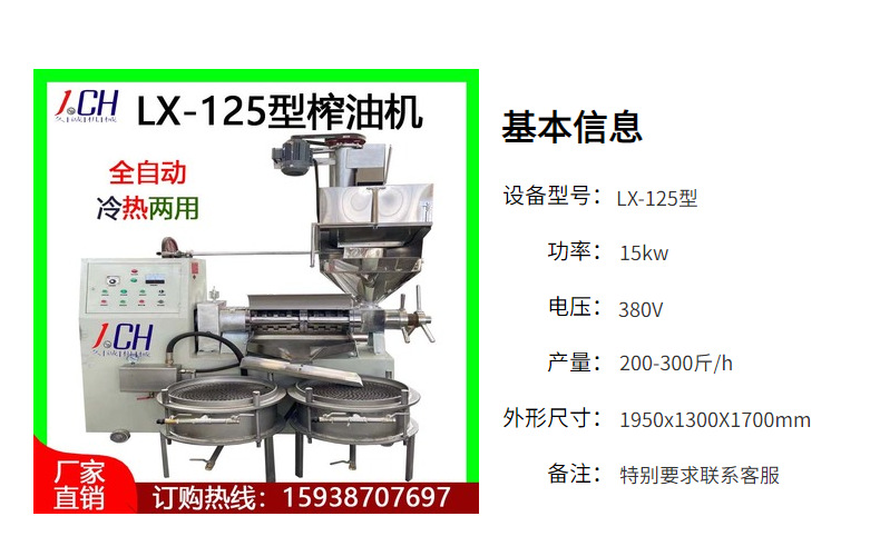 廠家直供現(xiàn)貨全自動125螺旋榨油機 核桃商用中型全自動油坊榨油機