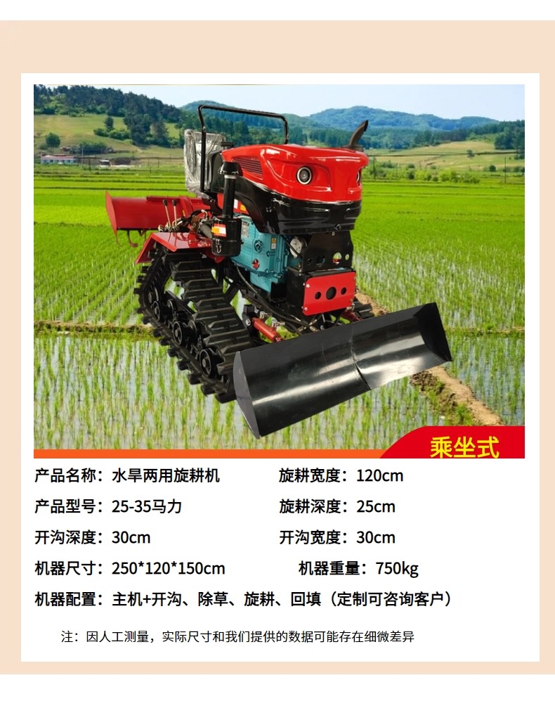 履帶式小型旋耕機(jī) 乘坐式水田旱地兩用耕地機(jī) 一機(jī)多用