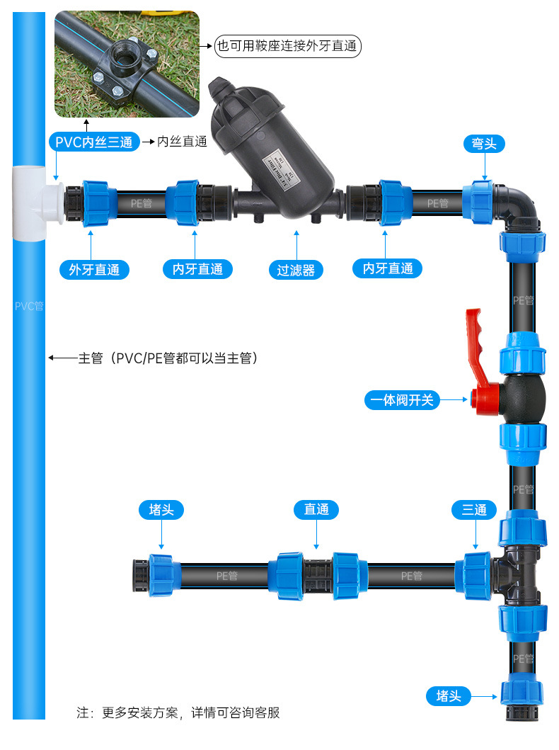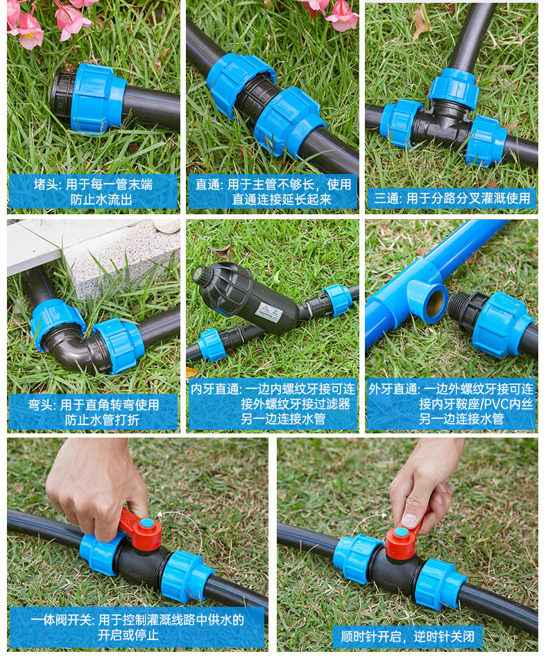 PE管閥門開關(guān)快接配件灌溉管滴灌管毛管園藝噴灌大棚配件