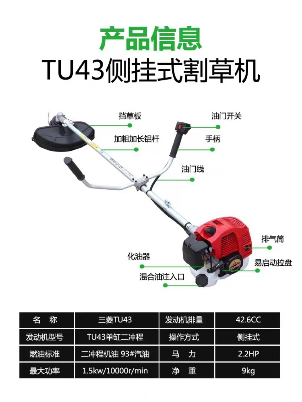 正品三菱TU43二沖程汽油割草割灌機(jī)農(nóng)用家用割草機(jī)草坪修剪機(jī)