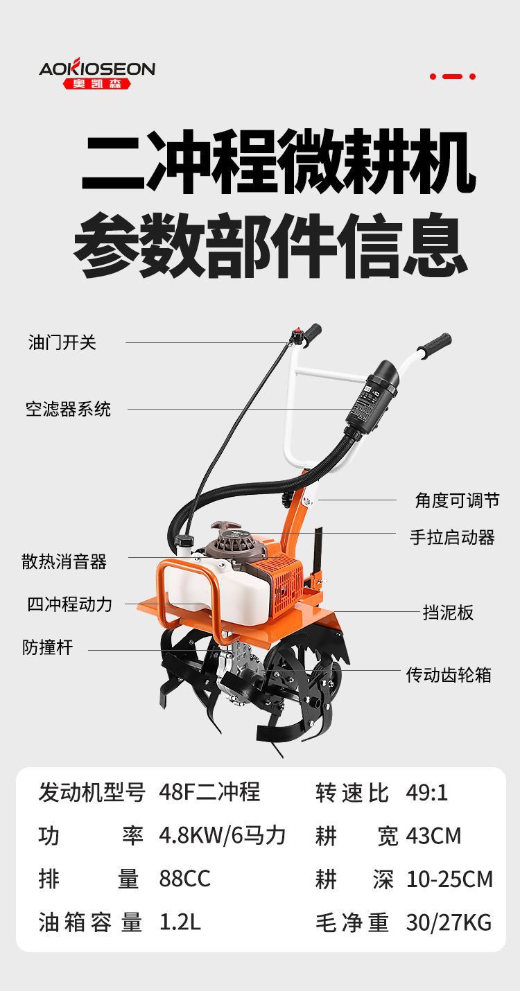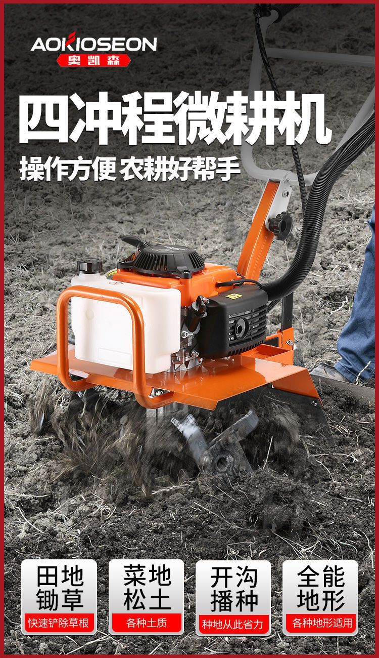 四沖程微耕機農(nóng)用多功能耕地機家用小型旋耕機犁地鋤草開溝松土機