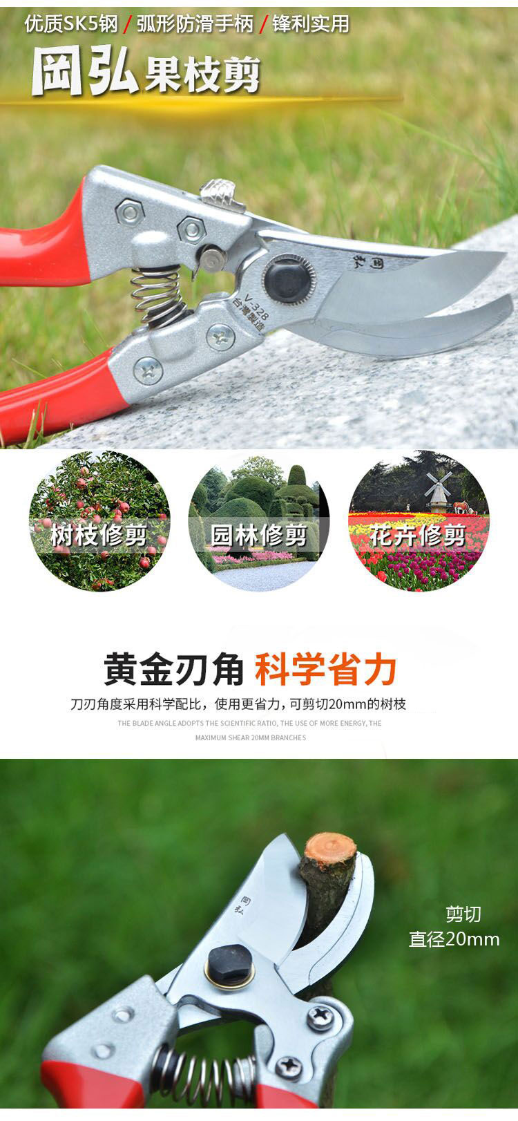 農(nóng)用岡弘修剪樹枝剪園林省力剪刀花剪粗枝剪果樹修枝園藝工具