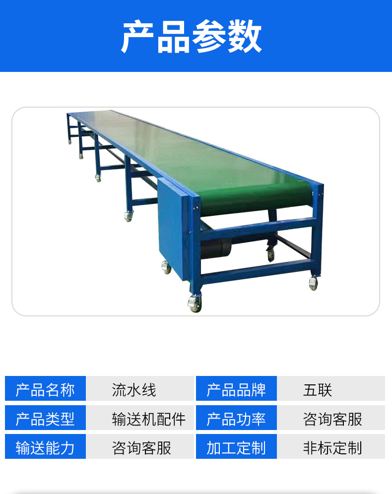 詳細(xì)信息 訂貨號14 加工定制是 貨號14水平物流線 類型帶式輸送機(jī) 品牌五聯(lián) 型號wl14 輸送能力200kg(t/h) 功率1.5(KW) 輸送距離可咨詢(m) 外形尺寸定制(m) 重量可咨詢(kg) 適用領(lǐng)域工廠、糧庫、物料輸送、冶金、建材、化工、礦山、糧油、食品、飼料、塑料、醫(yī)藥 規(guī)格價格僅供定金專拍,定制尺寸要求請咨詢客服。 是否跨境出口專供貨源否