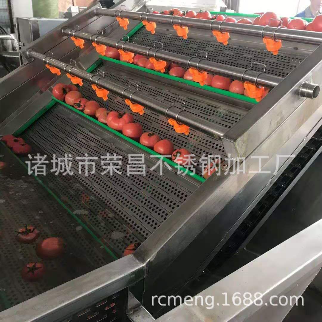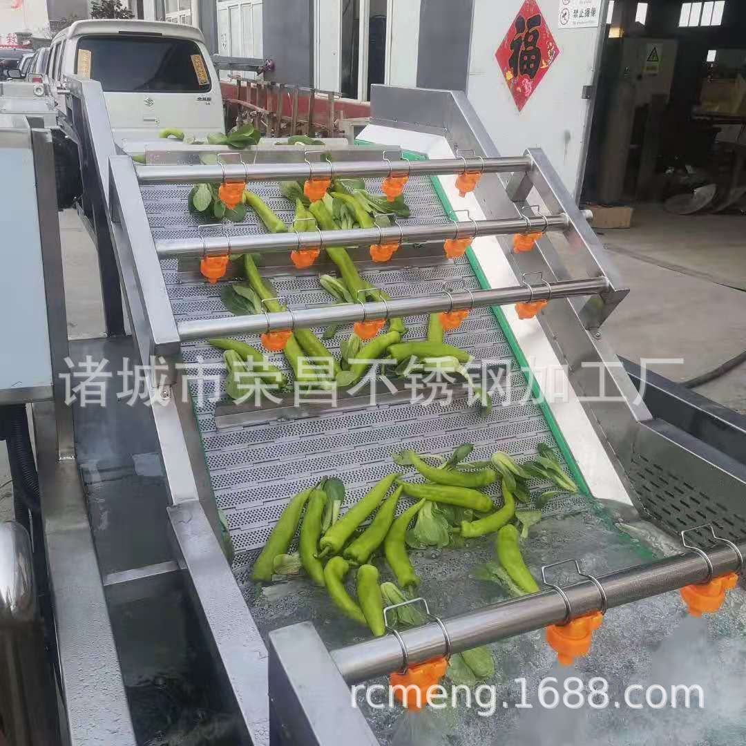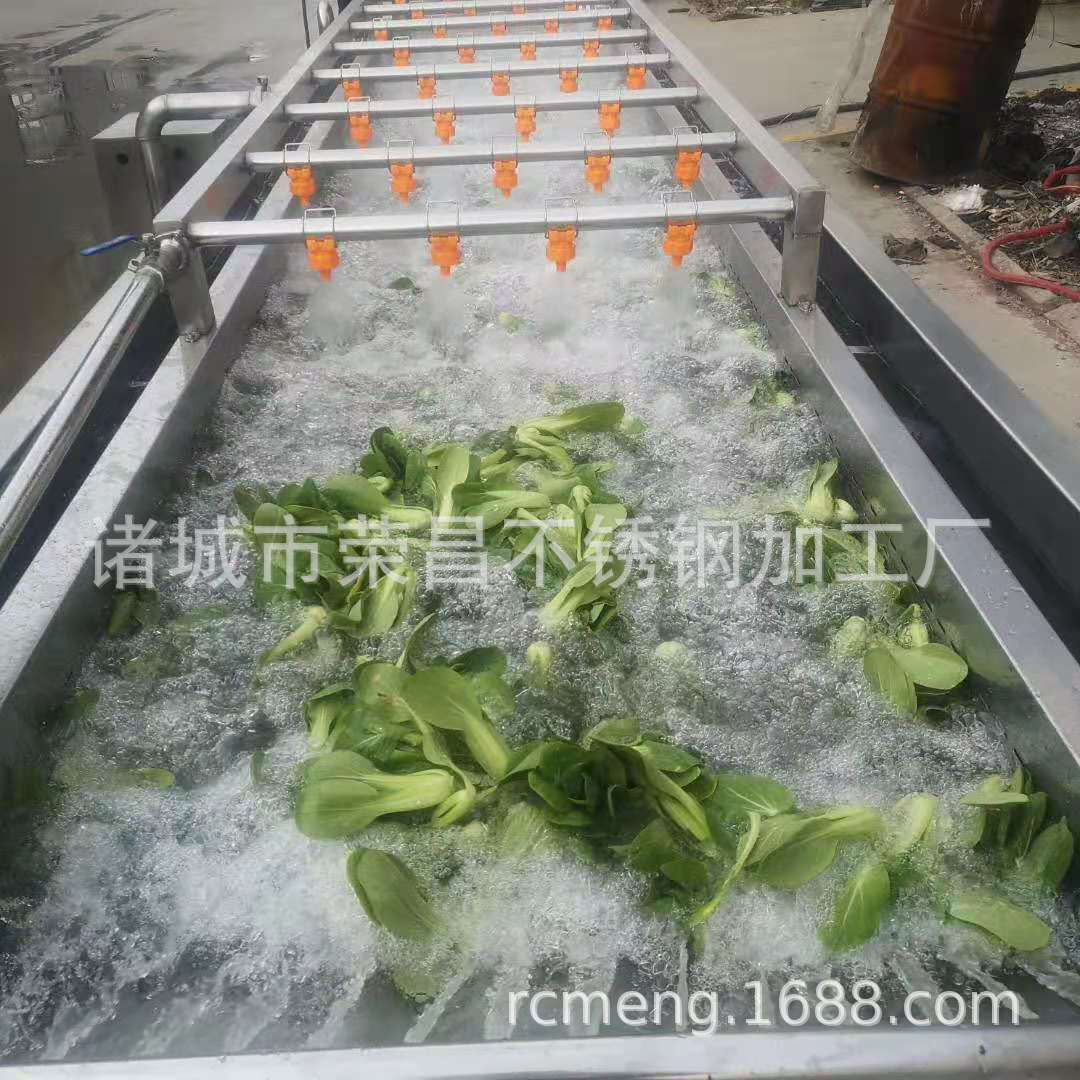 2、該機(jī)利用旋渦風(fēng)泵通過送汽管槽底送氣排管上的小孔,向水槽水中送氣,通過高壓水的射流作用產(chǎn)生大量氣泡及渦流對果蔬進(jìn)行翻動沖洗,被分離過的泥沙通過隔渣孔板沉入槽底,毛發(fā)纖維蟲卵漂浮在水面,被水流推入兩角的隔離板內(nèi),以此循環(huán)將果蔬洗凈,如兩臺并用,進(jìn)行粗洗。清洗線,清洗線