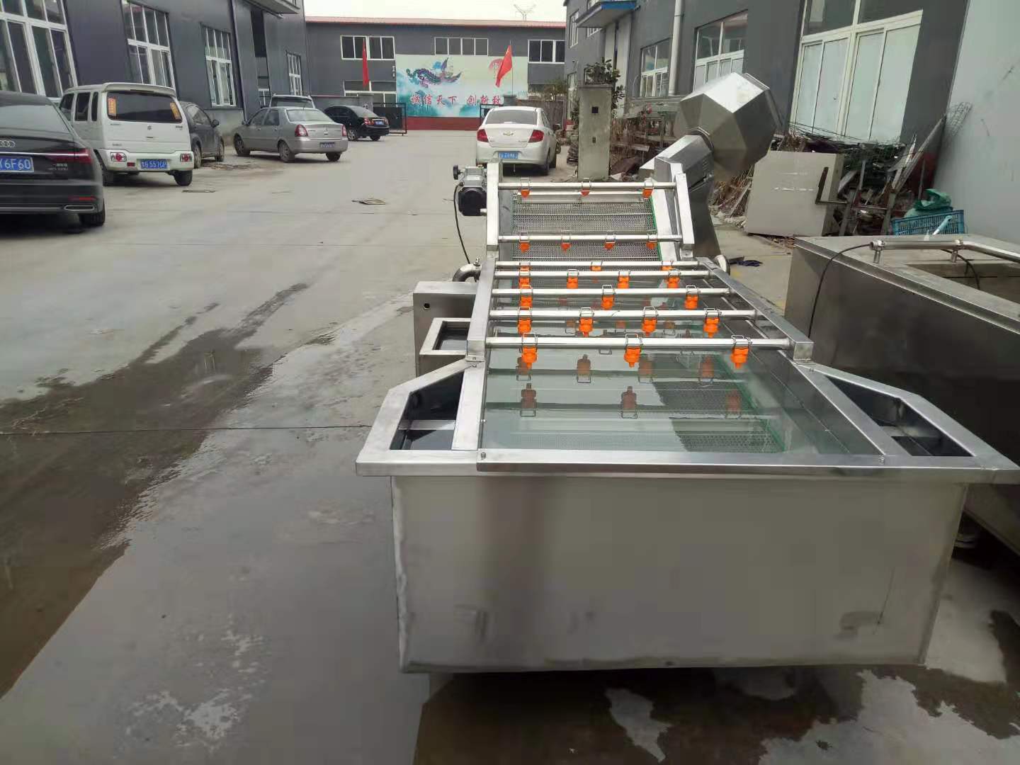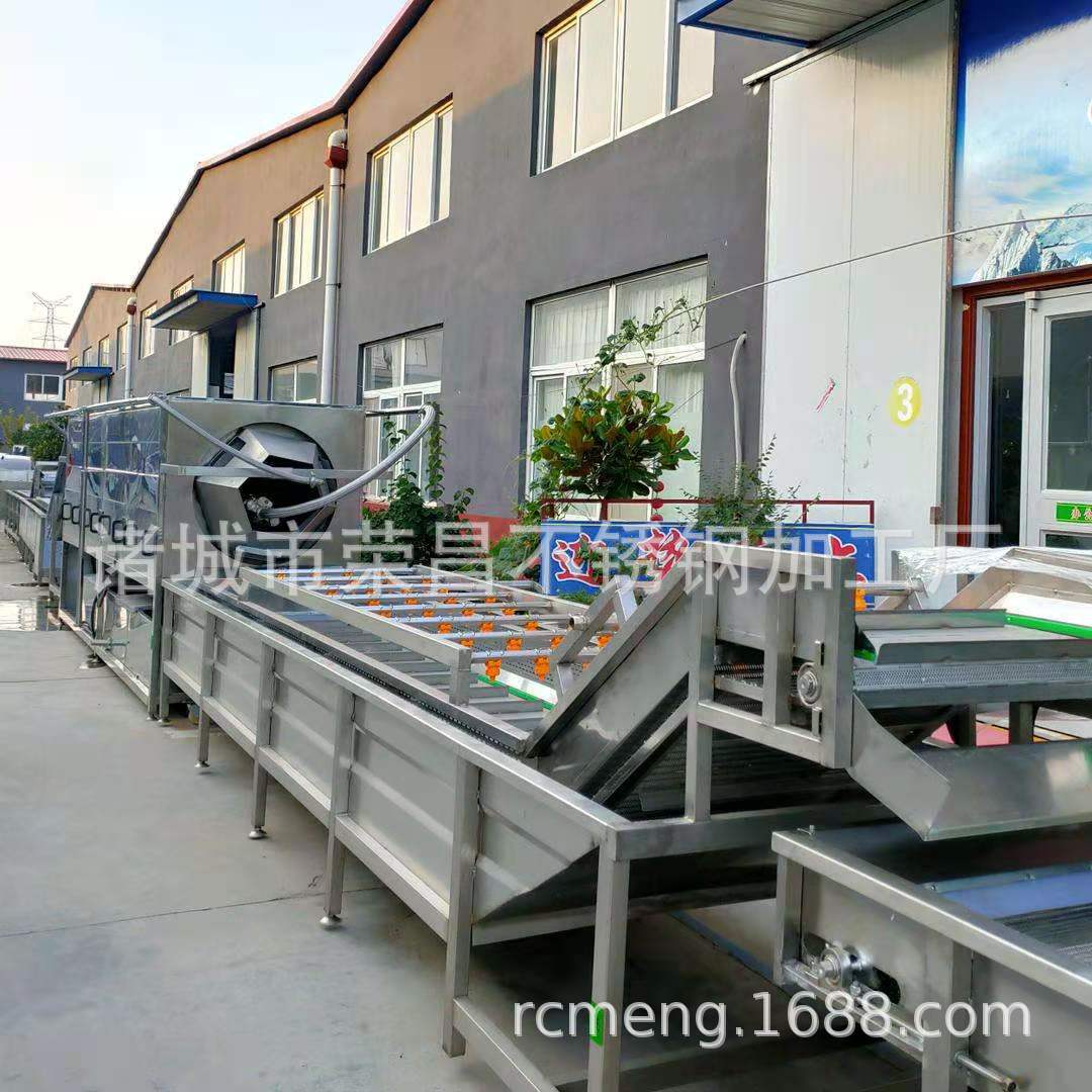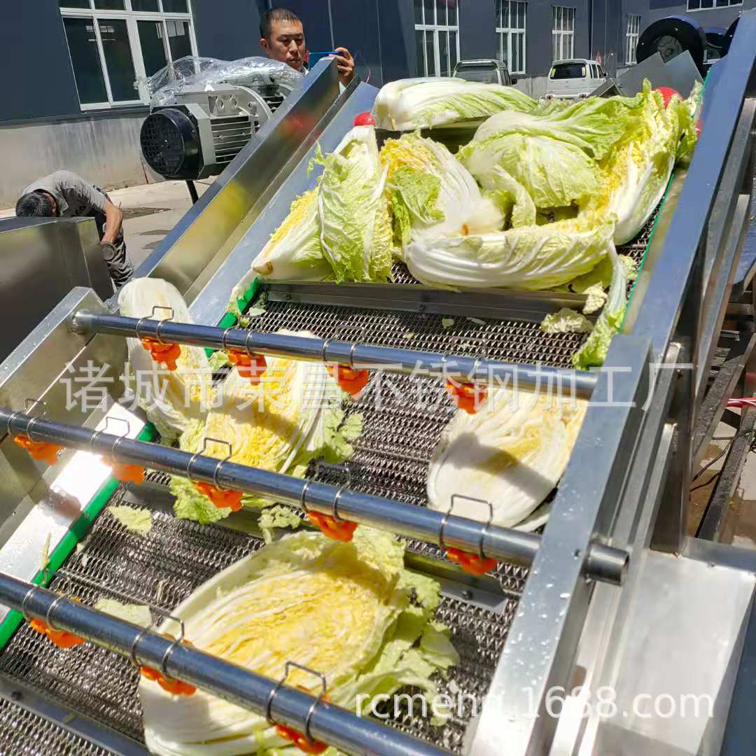 2、該機(jī)利用旋渦風(fēng)泵通過送汽管槽底送氣排管上的小孔,向水槽水中送氣,通過高壓水的射流作用產(chǎn)生大量氣泡及渦流對果蔬進(jìn)行翻動沖洗,被分離過的泥沙通過隔渣孔板沉入槽底,毛發(fā)纖維蟲卵漂浮在水面,被水流推入兩角的隔離板內(nèi),以此循環(huán)將果蔬洗凈,如兩臺并用,進(jìn)行粗洗。清洗線,清洗線