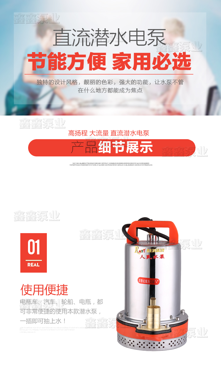 家用12V24V48V60V72伏直流潛水泵農(nóng)用電瓶抽水機(jī)高揚(yáng)程電動(dòng)車水泵