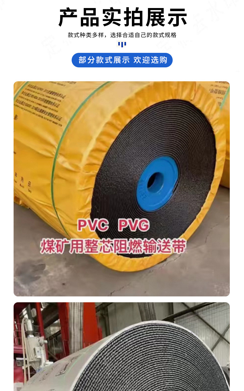 整芯阻燃PVCPCG高溫防火防靜電礦山井下專用阻燃橡膠輸送帶
