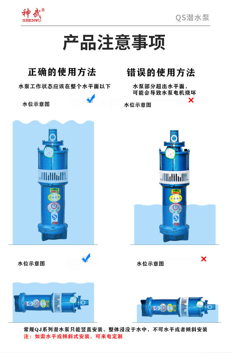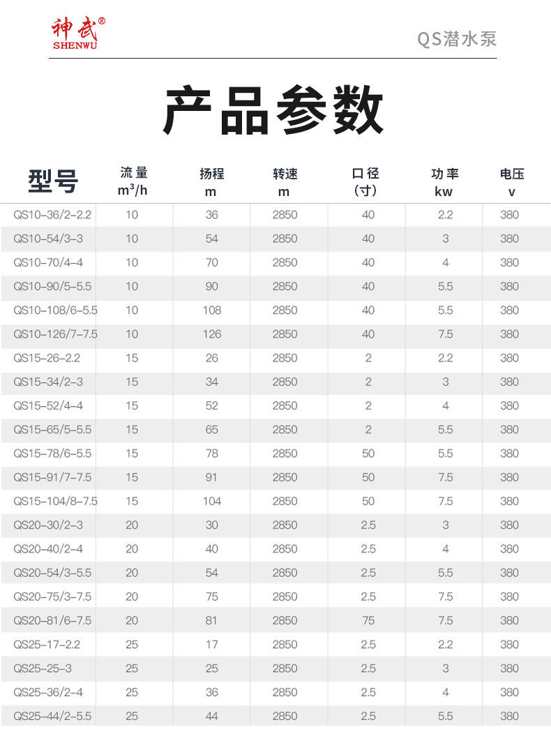 神龍大流量高揚(yáng)程QS深井潛水泵水浸式觀景井用農(nóng)用噴泉潛水泵380V