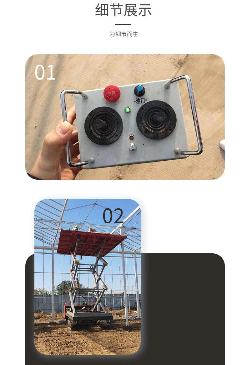 詳細(xì)信息 產(chǎn)地山東濟寧 是否進口否 訂貨號593 品牌凱信 型號8米升降臺 貨號593 類型液壓升降臺 加工定制是 整機重量4200(kg) 額定載荷2000(kg) 最低高度2300(mm) 最大寬度2500(mm) 電動功率56(KW) 材質(zhì)金屬 電源電壓380V 本產(chǎn)品價格、參數(shù)僅供參考,具體詳詢電話:178-6130-0705 履帶式升降平臺 10米戶外操作履帶平臺 坑洼路面用升降機