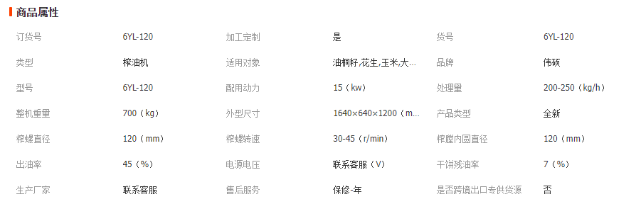 120型榨油機主要技術(shù)參數(shù):
