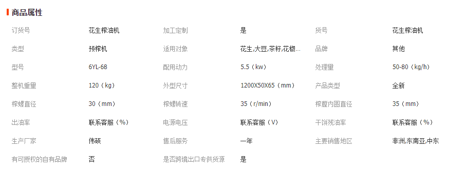6YL型螺旋榨油機(jī)是新改進(jìn)的榨油機(jī)產(chǎn)品,是目前油料加工機(jī)械中的機(jī)器.它具有結(jié)構(gòu)簡單,使用方便,適用性墻,出油率高,節(jié)電,噪音低等特點(diǎn),對各種油料如花生、大豆、菜籽、棉籽、橄欖、向日葵、椰子、可可豆、草籽等植物油料均可進(jìn)行壓榨,適用于中、小型油料加工廠及個(gè)體專業(yè)戶使用.也可用于浸出油廠的預(yù)榨.