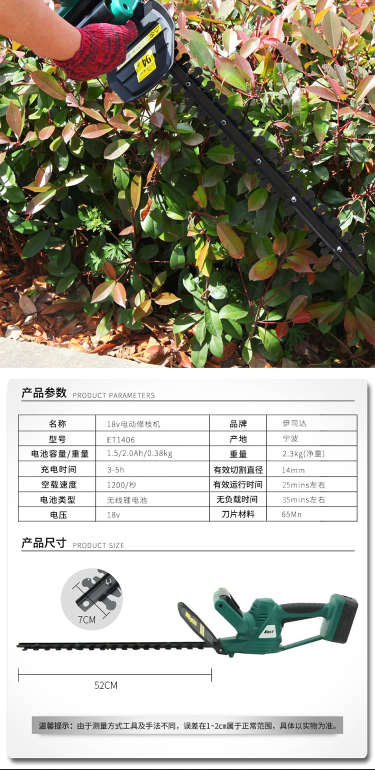 伊司達(dá)電動(dòng)綠籬機(jī)充電式修剪機(jī)家用修枝機(jī)粗枝剪綠籬剪
