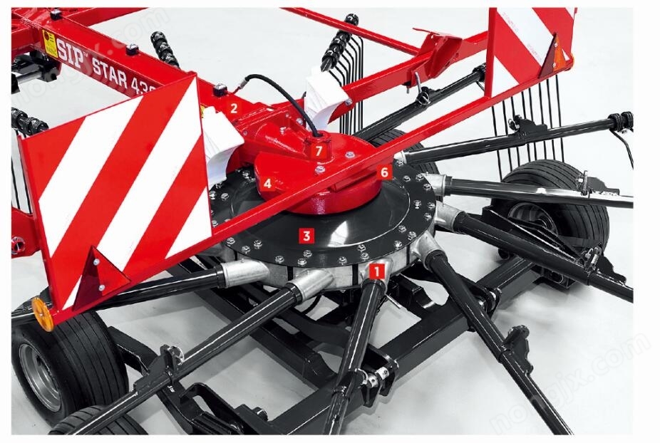 2、2個(gè)模塊化轉(zhuǎn)子帶有20個(gè)彈齒臂,80根彈齒,可以將草料摟成一個(gè)雙草條或兩個(gè)單草條。