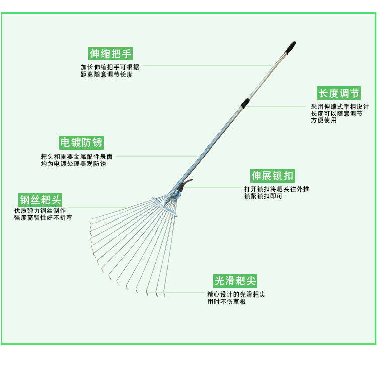 15齒伸縮鋼絲草耙,15齒不伸縮鋼絲草爬