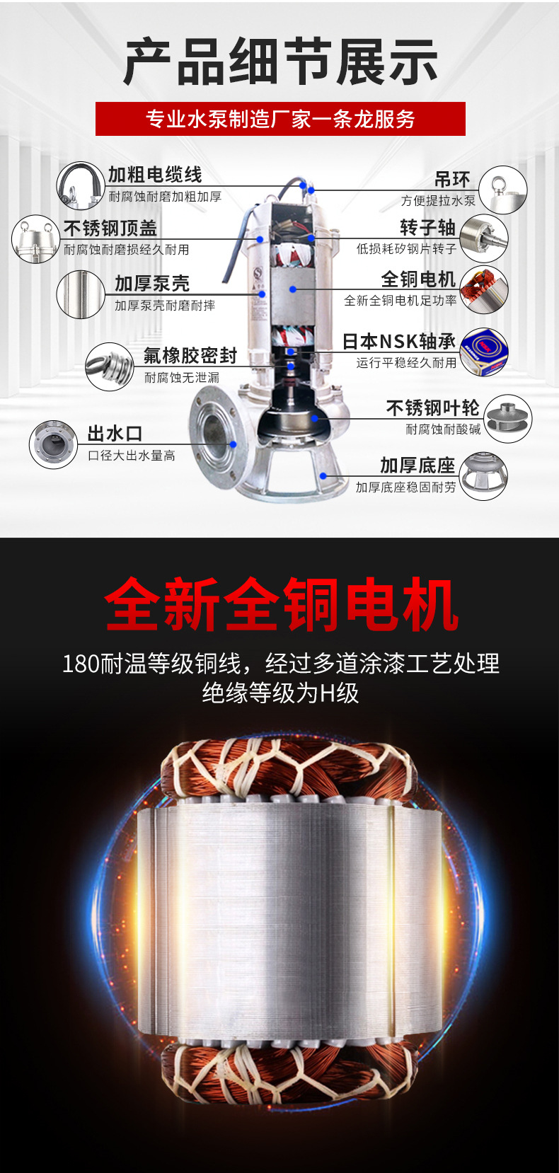 潛水泵WQP不銹鋼污水泵 定制316L不銹鋼抽海水380v耐腐蝕水泵