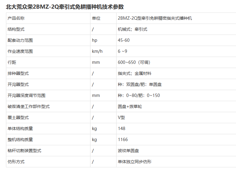 北大荒眾榮2BMZ-2Q牽引免耕精密指夾式播種機(jī)