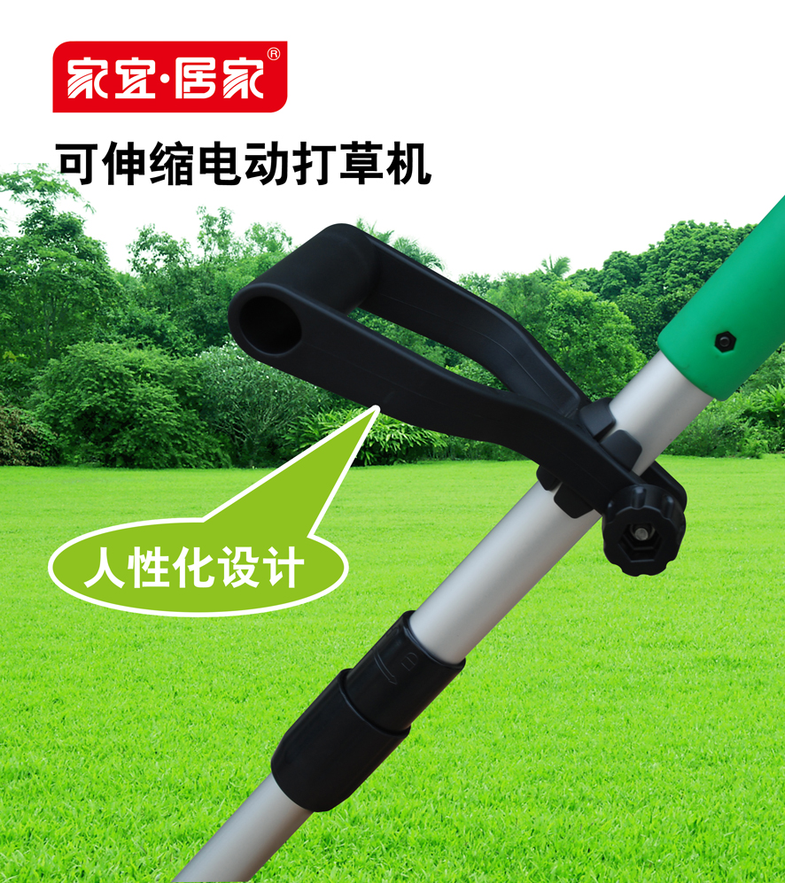 直接安插在電源插座上使用或連接電源接線板,根據(jù)花園的大小,配備電源線長(zhǎng)短。打草時(shí),按下打草機(jī)手柄上的開關(guān)就可以了。